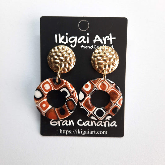 Pendientes Donut Mediano Naranja Negro con Base Dorada