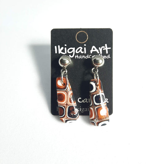 Pendientes Rectangular Naranja Negro con Base Dorada