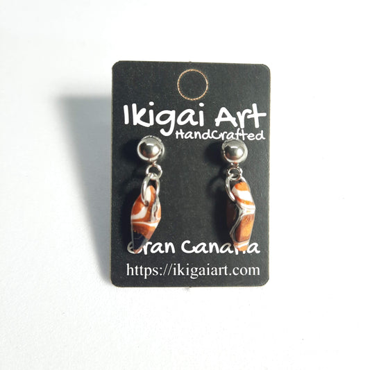 Pendientes Fantasy Naranja Negro con Base Acero