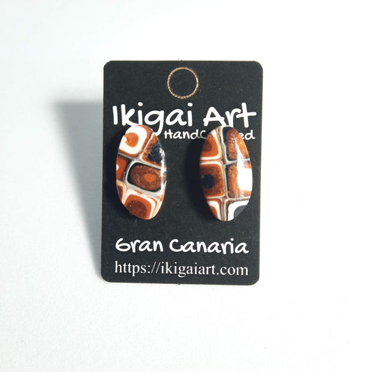Pendientes Botón Ovalado Naranja Negro