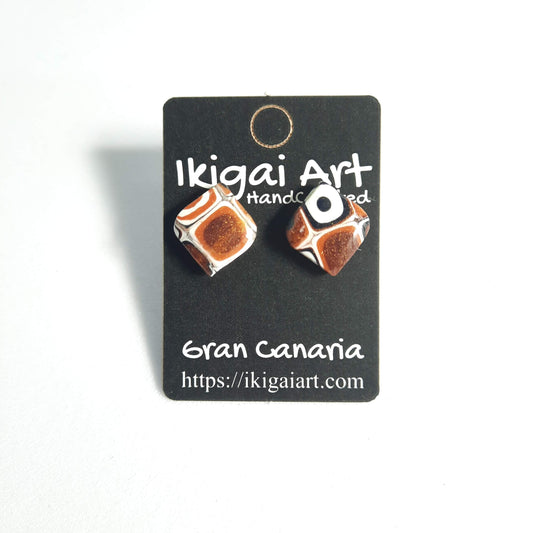Pendientes Botón Cuadrado Naranja Negro