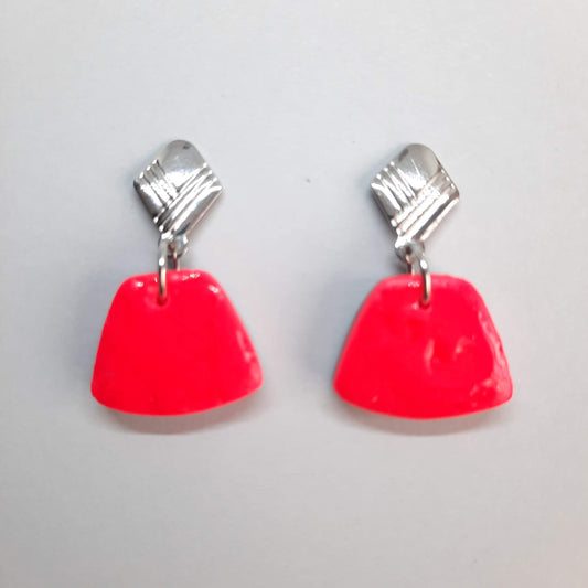 Pendientes Trapecio Rosa Neon con Base Acero