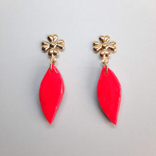 Pendientes España Rosa Neon con Base Dorada