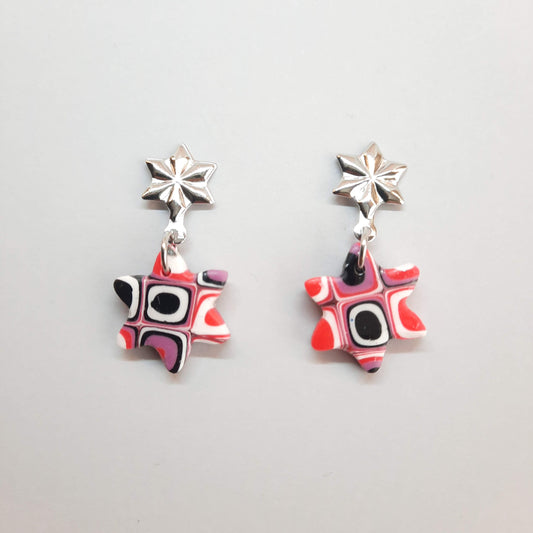 Pendientes Fantasy Mediano Rosa Verano con Base Acero