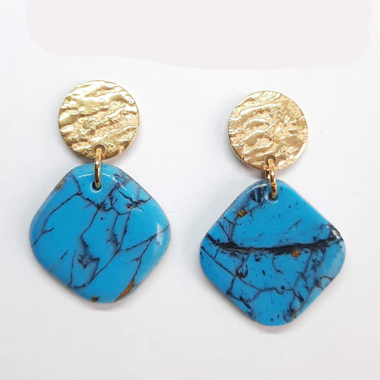 Pendientes Modernos Medianos Turquesa con Base Acero o Dorada