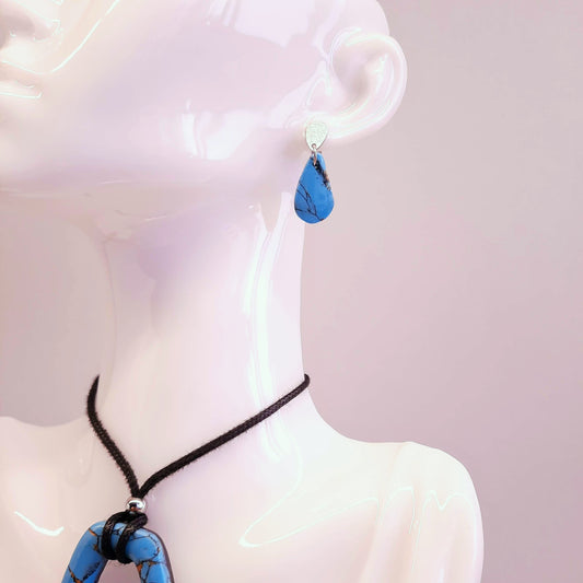Pendientes Gota Medianos Turquesa con Base Negra