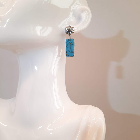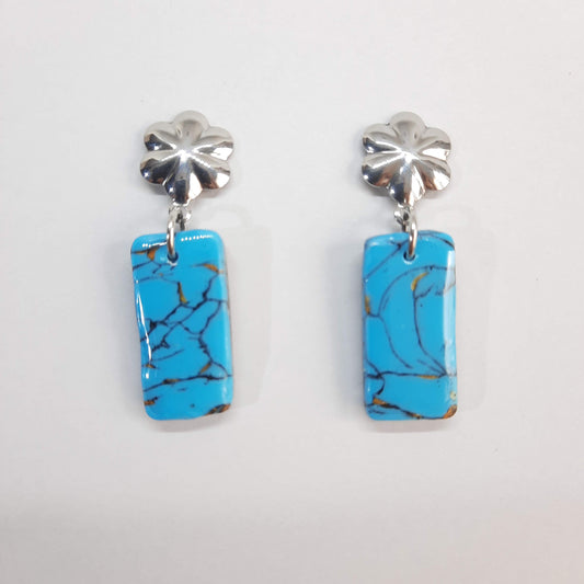 Pendientes Rectángulo Turquesa con Base Plateada
