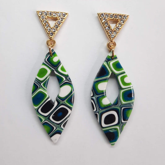 Pendientes Fantasy Verde Blanco con Base Acero