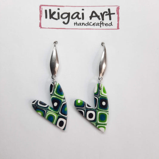 Pendientes Corazón Verde Blanco con Base Acero