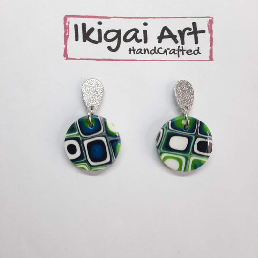 Pendientes Botón Fantasy Verde Blanco