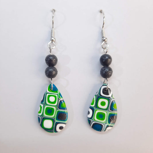 Pendientes Gota Verde Blanco con Cuentas de Lava