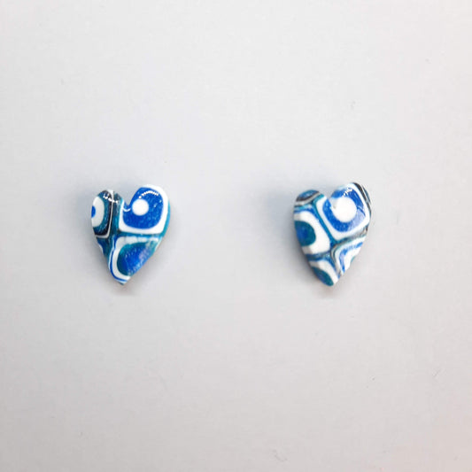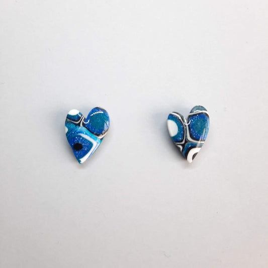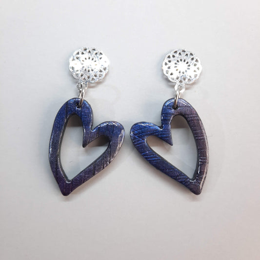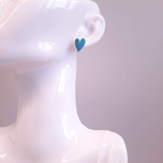 Pendientes Corazón Hueco Azul con Base Acero o Dorada