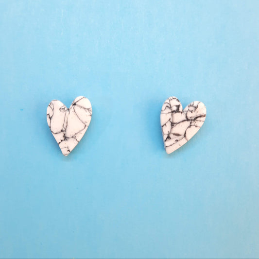 Pendientes Botón Corazón Pleno Blanco Mármol
