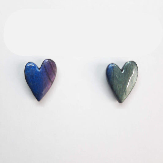 Pendientes Corazón Hueco Labradorita Violeta con Base Acero o Dorada
