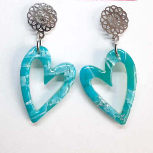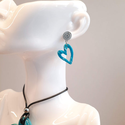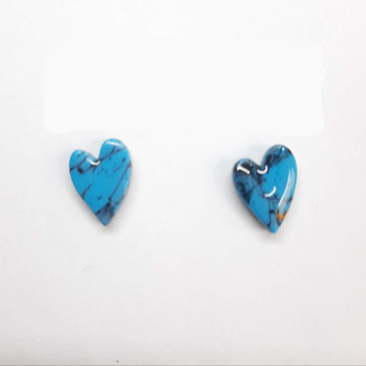 Pendientes Corazón Hueco Turquesa con Base Acero o Dorada