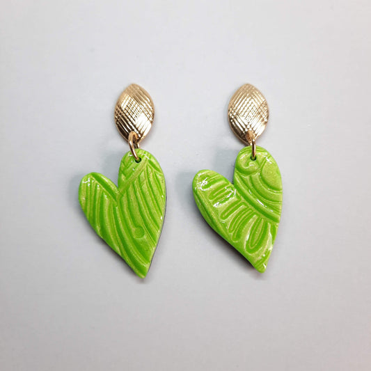 Pendientes Corazón Pleno Verde con Base Acero o Dorada